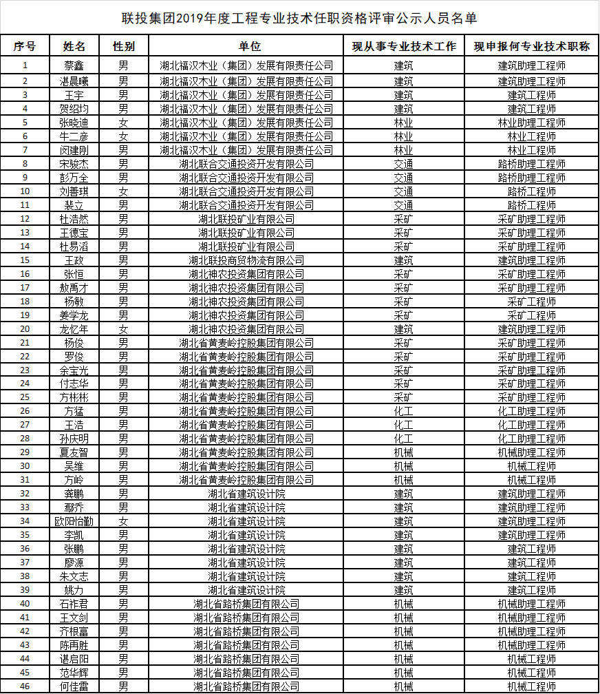 附件:聯(lián)投集團2019年度工程專業(yè)技術(shù)任職資格評審公示人員名單